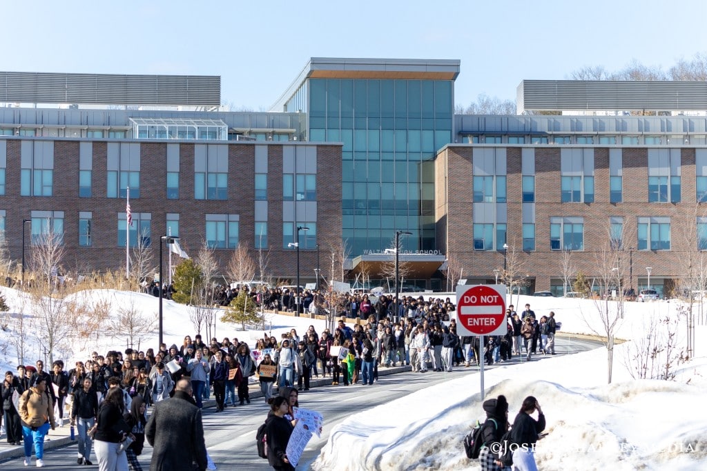 Students marched from Waltham High School to Lexington Street. Photo by Joseph Sharkey.