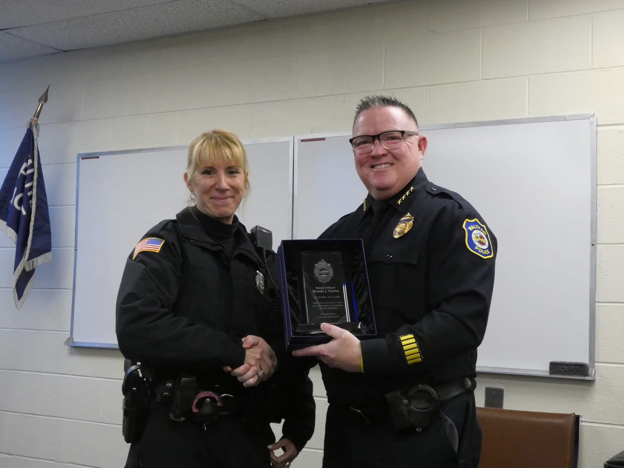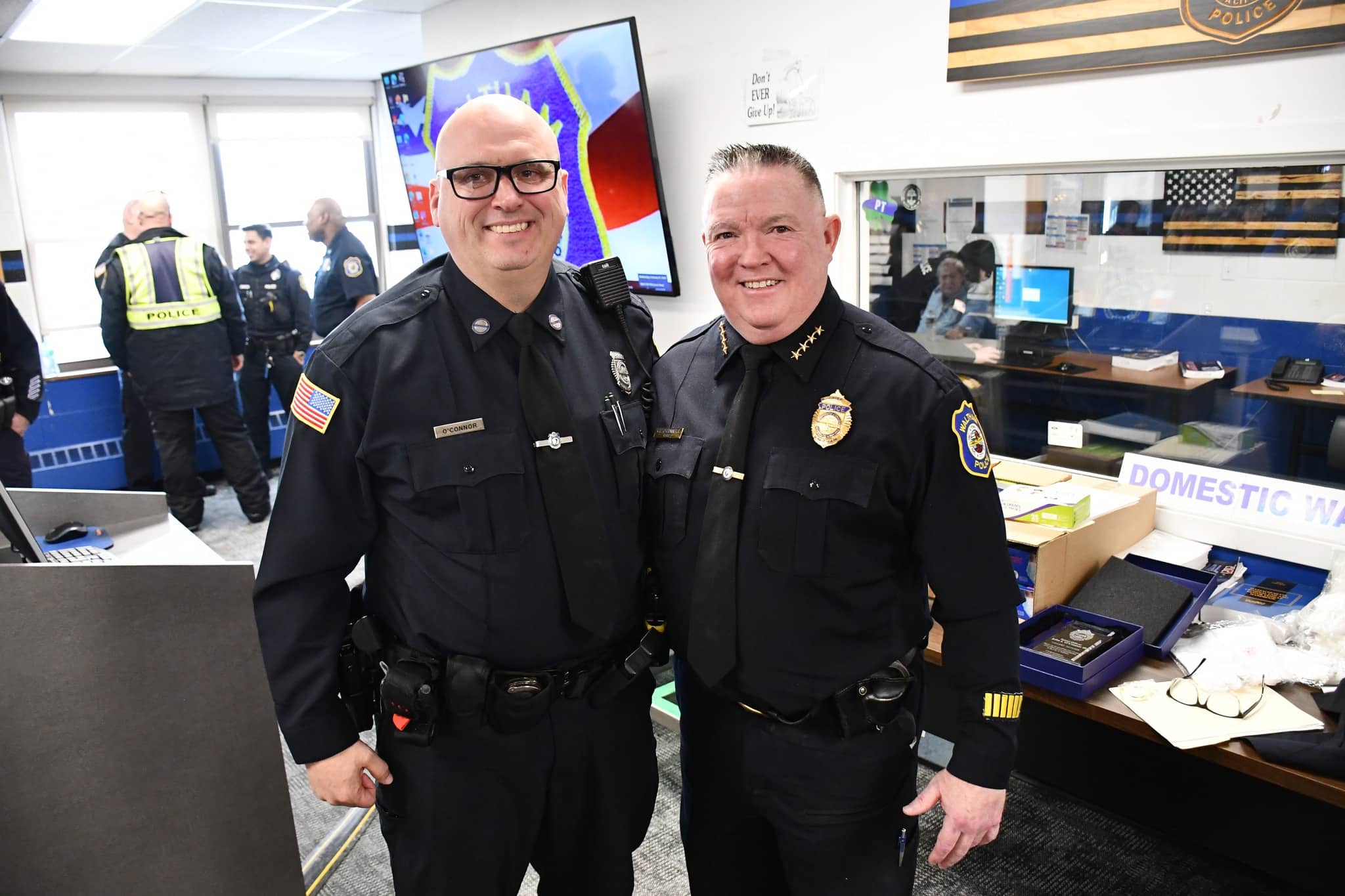 The Waltham Police Department announced the retirement of two veteran police officers this past week. Officer Brenda Hurley is stepping down after 32 years of service. Officer John O’Connor retired after 23 years on the force. Mayor Jeannette A. McCarthy, Police Chief Kevin O’Connell and assorted police officers, family and friends gathered to wish the retiring officers a happy retirement.