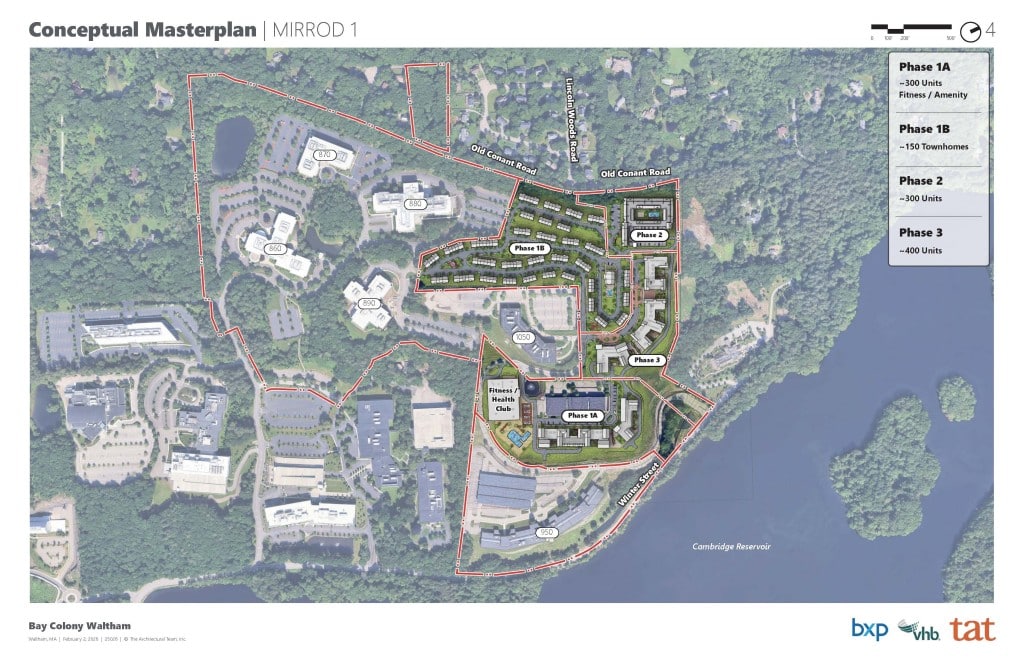 The next phase of the plan would involve another 300-unit apartment building abutting Winter Street, followed by a 400-unit building overlooking the Cambridge Reservoir at 1100 Winter St.