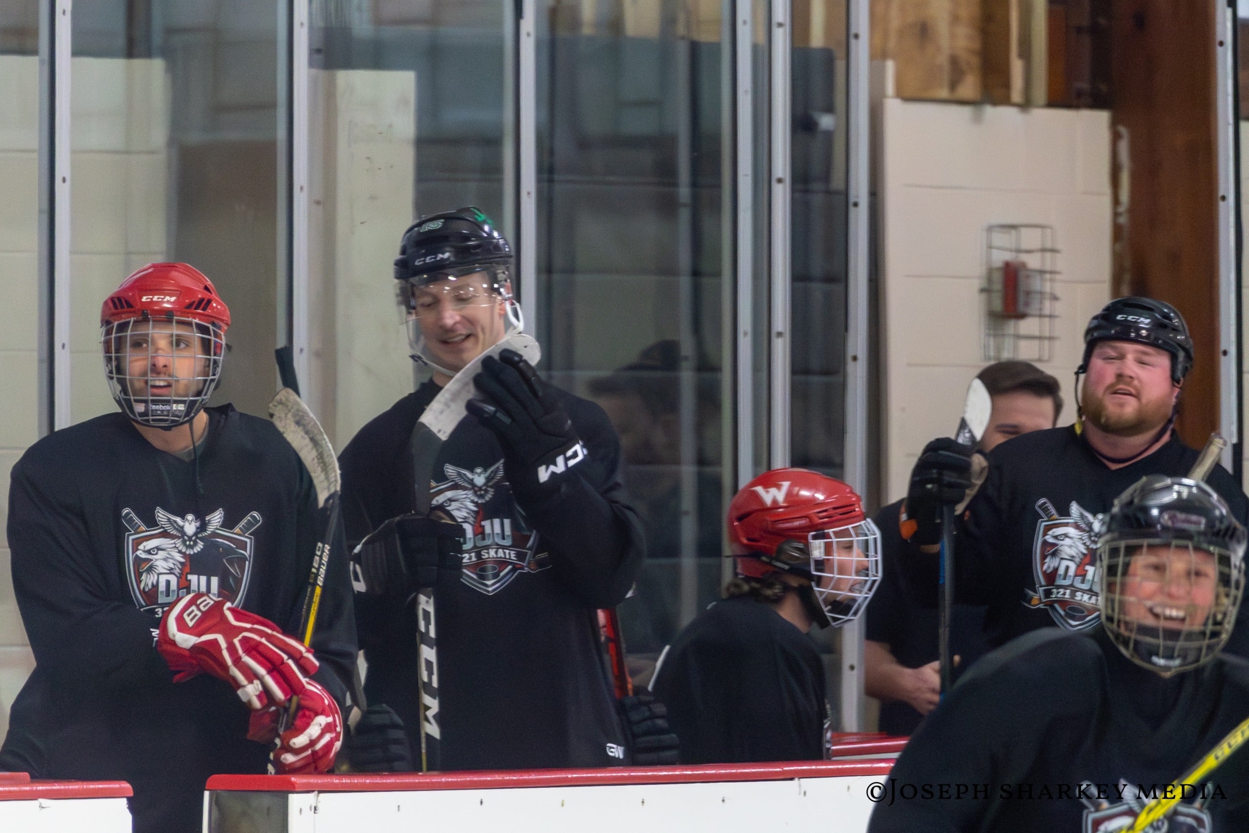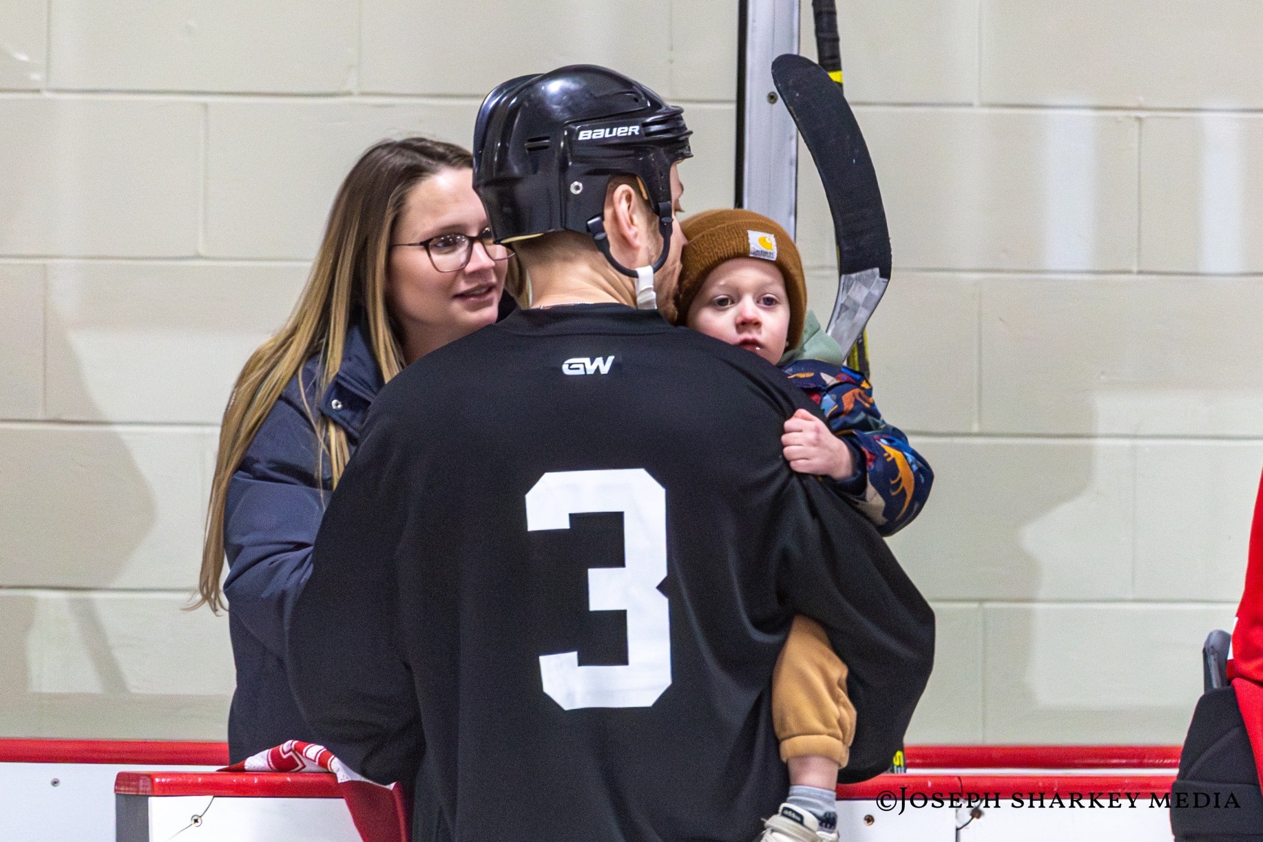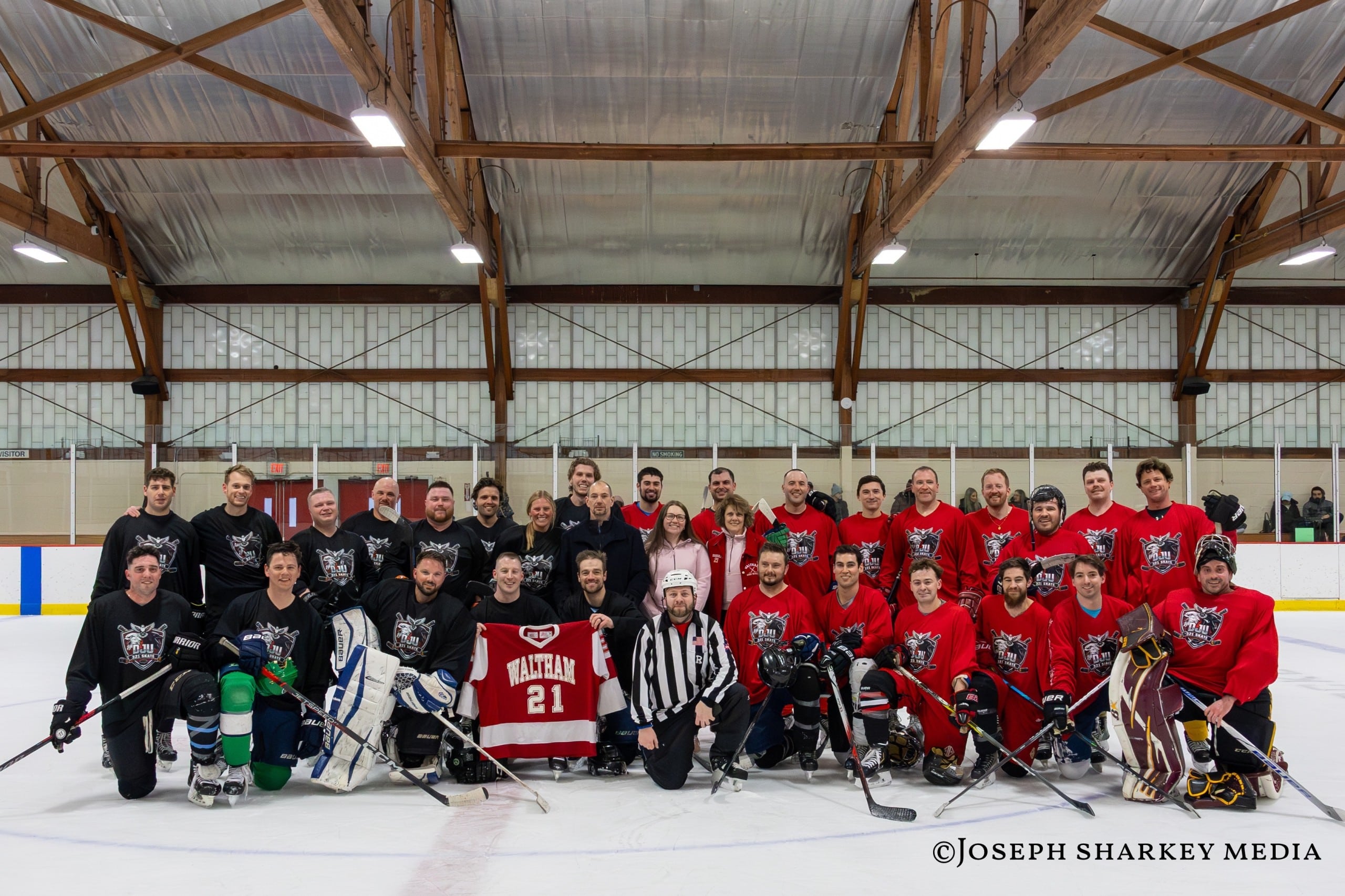 Throughout the afternoon, the rink was filled not only with hockey but with moments of reflection and connection. Players embraced, families watched from the boards with young children, and teammates proudly raised a Waltham jersey bearing the number 21 in Usseglio’s honor.