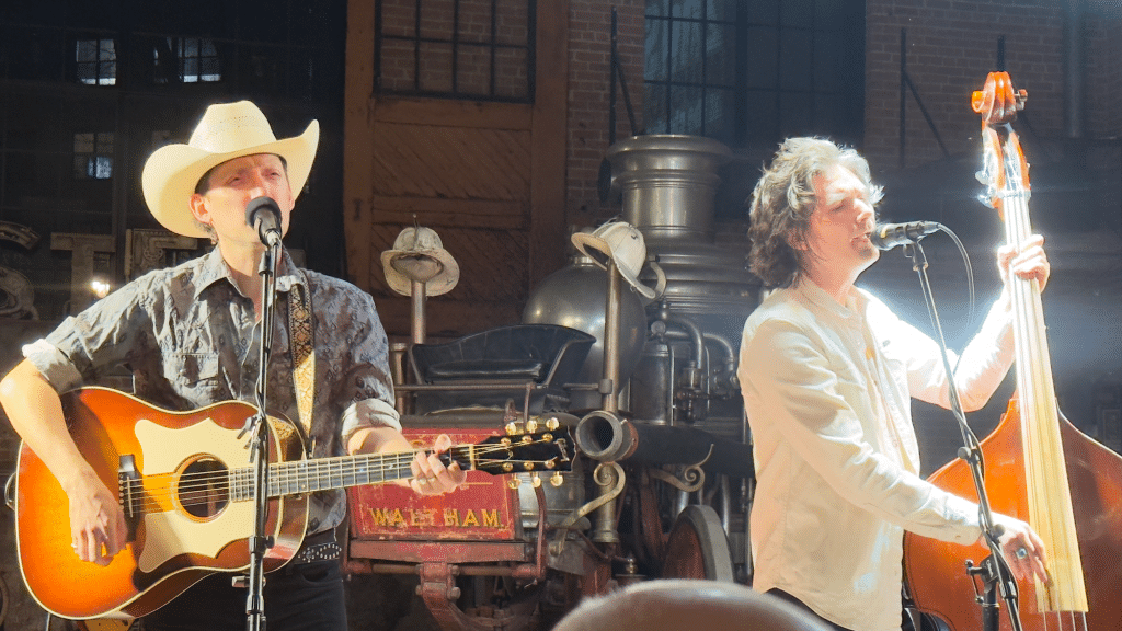 Ward Hayden and Greg Hall gave a fabulous performance last night at the Charles River Museum of Industry & Innovation, part of the museum’s Second Shift music series. Hayden played guitar, harmonica, and kazoo. Hall played upright bass and guitar.