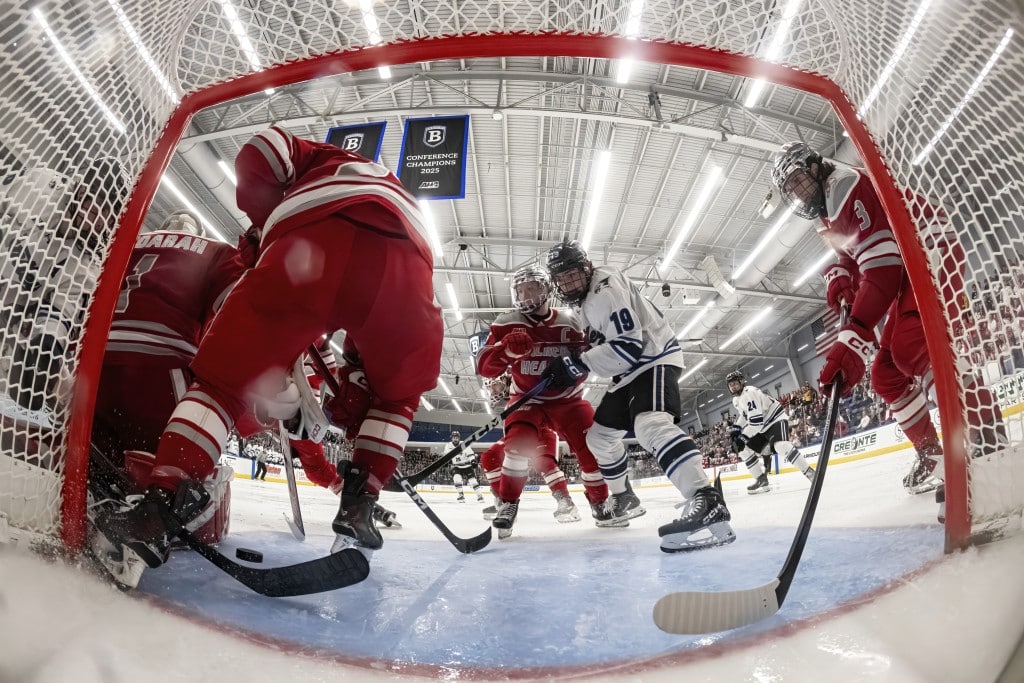 The Falcons captured their second consecutive Atlantic Hockey Championship in front of a sold-out crowd at Bentley Arena Saturday night, delivering a performance that matched the energy inside the building.