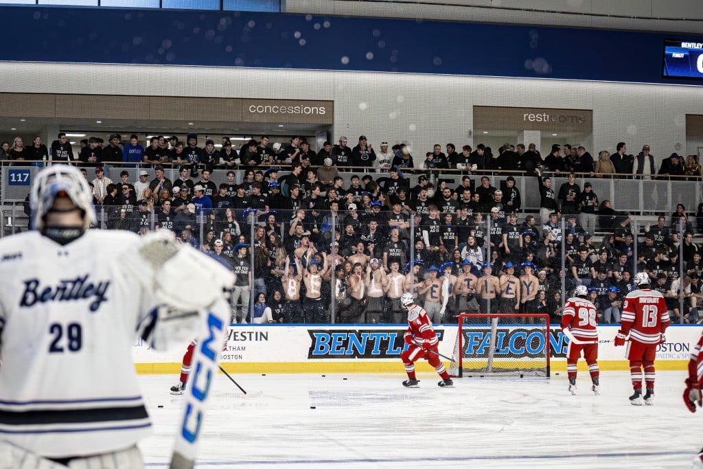 Bentley held the 3-2 lead for the next several minutes and SHU pulled its goalie with 2:15 remaining. Several blocked shots and strong defensive play under pressure kept Bentley in the lead. After a timeout by SHU, a final defensive zone faceoff was won by Hjartarson and set off a huge celebration at Bentley Arena.