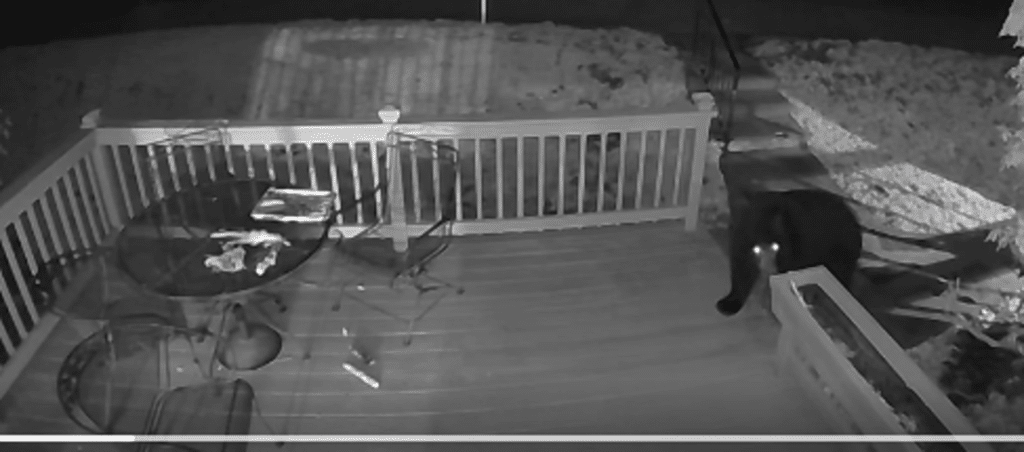 Household camera footage captured sight of a black bear visiting a Waltham resident’s porch last week.