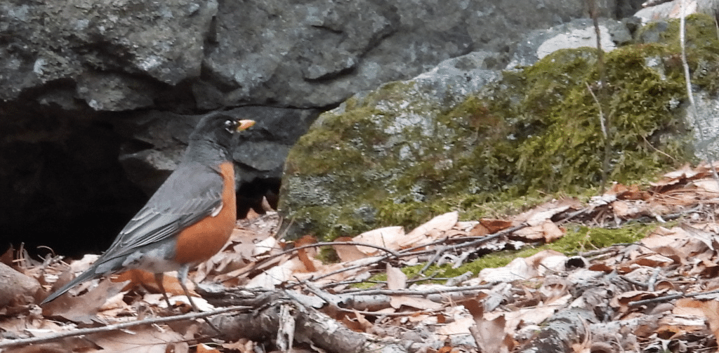 The American robin, with its orange breast and ivory eyeliner, is a familiar and welcome harbinger of spring. She hops about, posture erect, as she searches for breakfast – a plump earthworm, perhaps, stirring in the softening loam. You will hear the robin’s musical warble piercing the woods in the predawn hours.