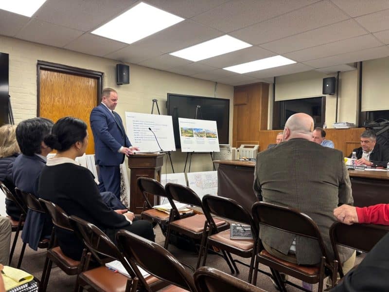 According to developer Curtis Beaton and his legal representation Phillip McCourt, an independent engineering report on the project and a letter from a lawyer representing an abutter were presented to them immediately before the meeting. Since there was no time to read and respond to the material, McCourt requested the case be continued to a later date.