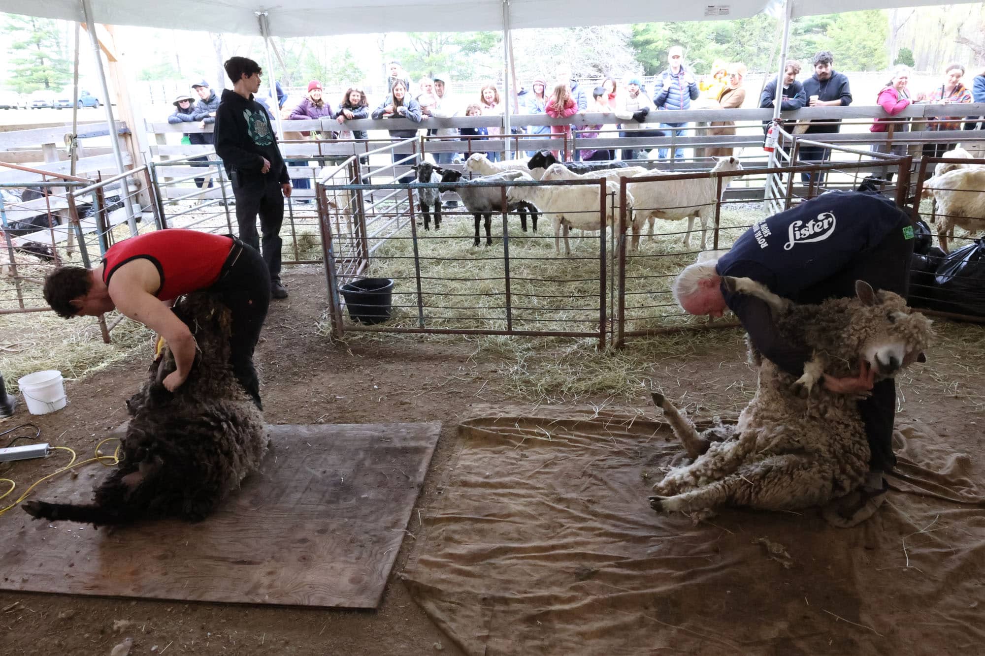 During the seven-hour event, professional sheep shearers Kevin Ford and Leslie Sullivan clipped about 20 sheep, while spectators of all ages marveled and cheered and bleated along with the animals.