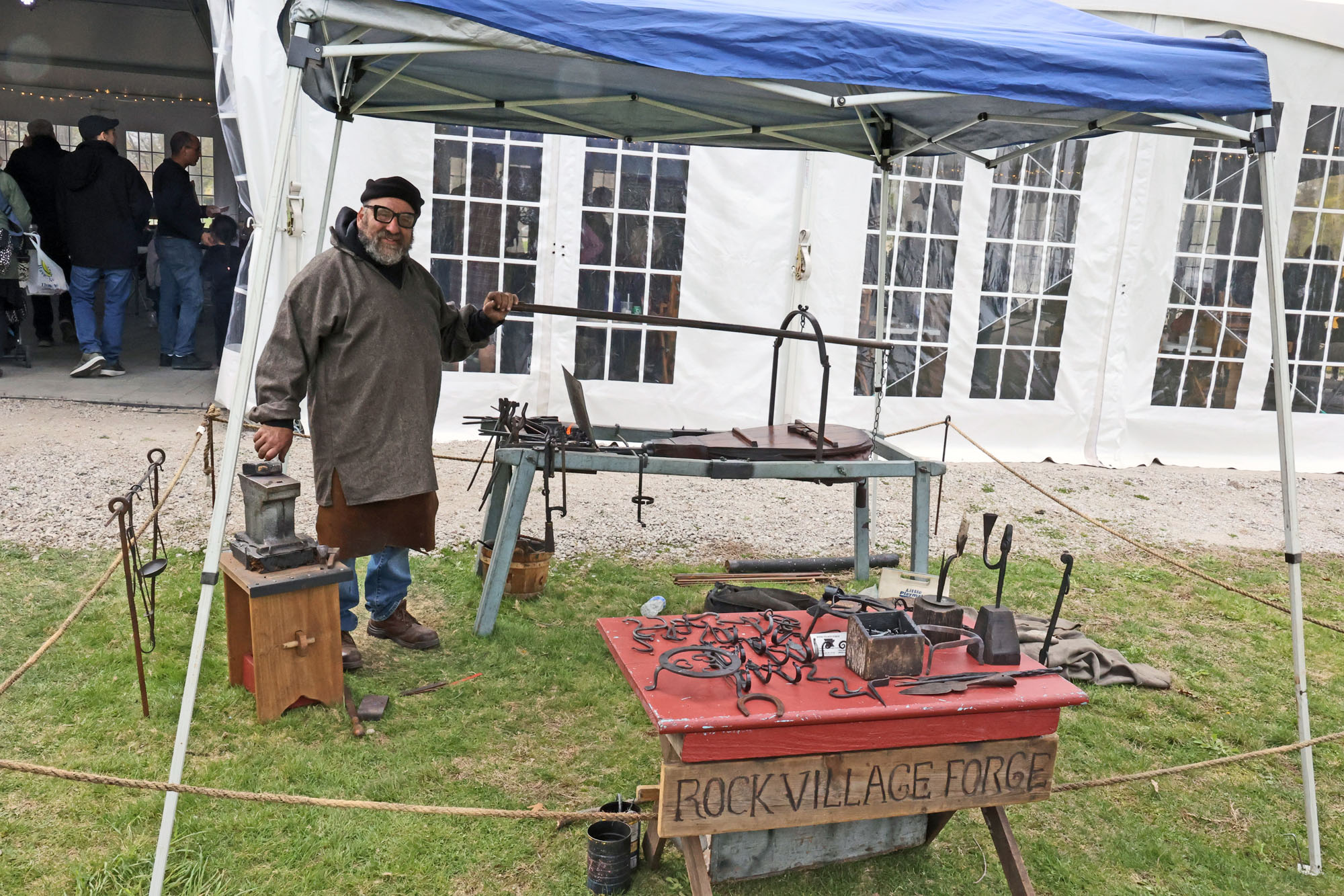 Blacksmith Dean Rantz of Rock Village Forge said little kids are fascinated by his hand-forged iron work. He frequently turned to operate the bellows, pumping air into the charcoal, while children watched the fire grow and asked whether he’d ever burned himself (“yes, of course”).