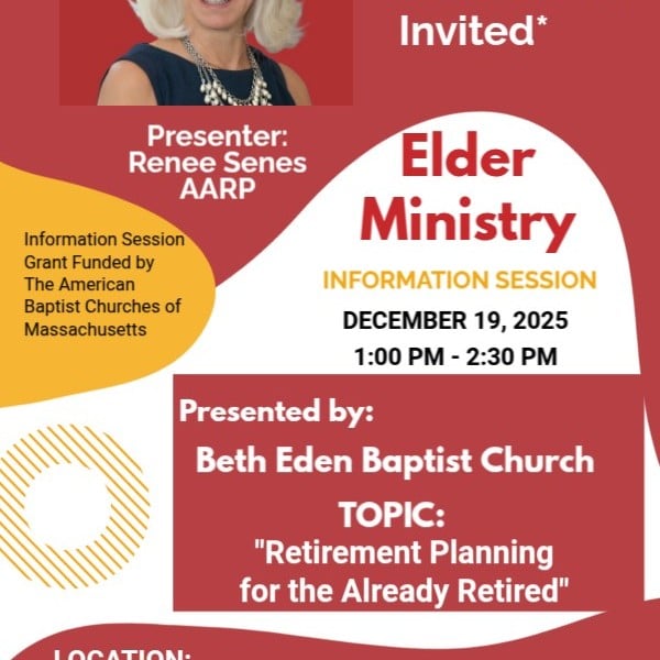 Beth Eden Baptist Church will host an Elder Ministry Information Session with Renee Senes, a guest presenter from AARP. This is an online Zoom session. To register and receive the Zoom […]