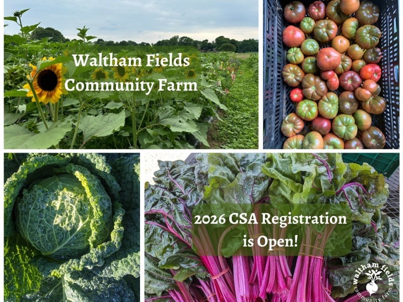 Vegetable, fruit, flower, and mushroom CSA shares are now available for the 2026 season at Waltham Fields Community Farm (WFCF). Learn more about CSA shares and sign up here. WFCF […]